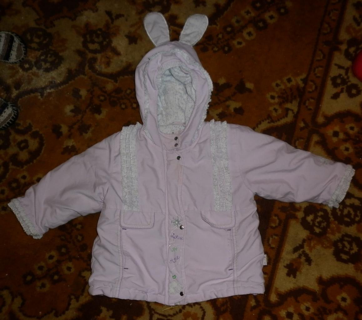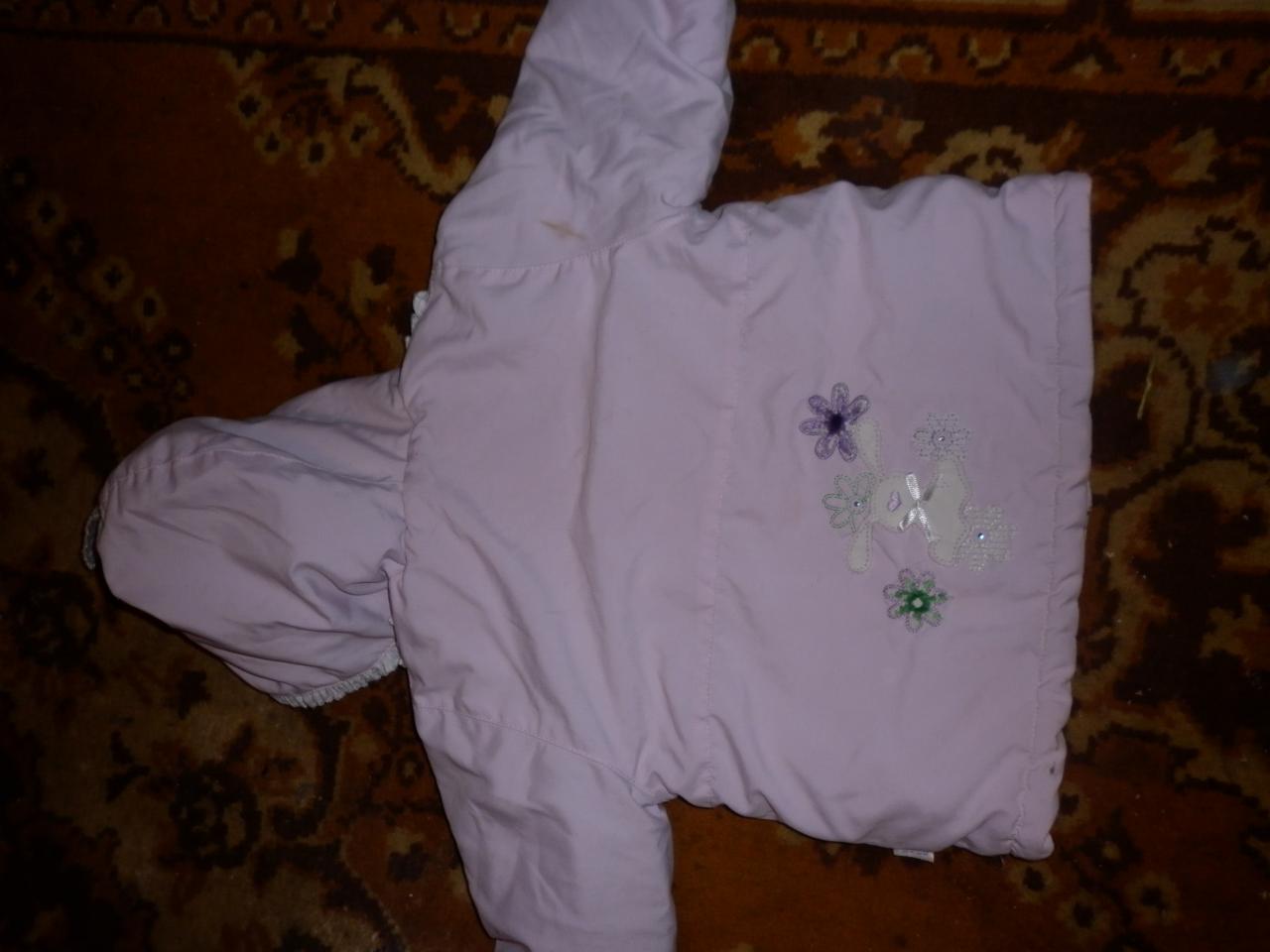 курточка фиолетово-розоватая на тонком синтепоне ,фирмы Aziz bebe, в жизни красивее в отличном состоянии без пятен,где то на год,шарф шел вместе с курткой в комплектецена 30грн
