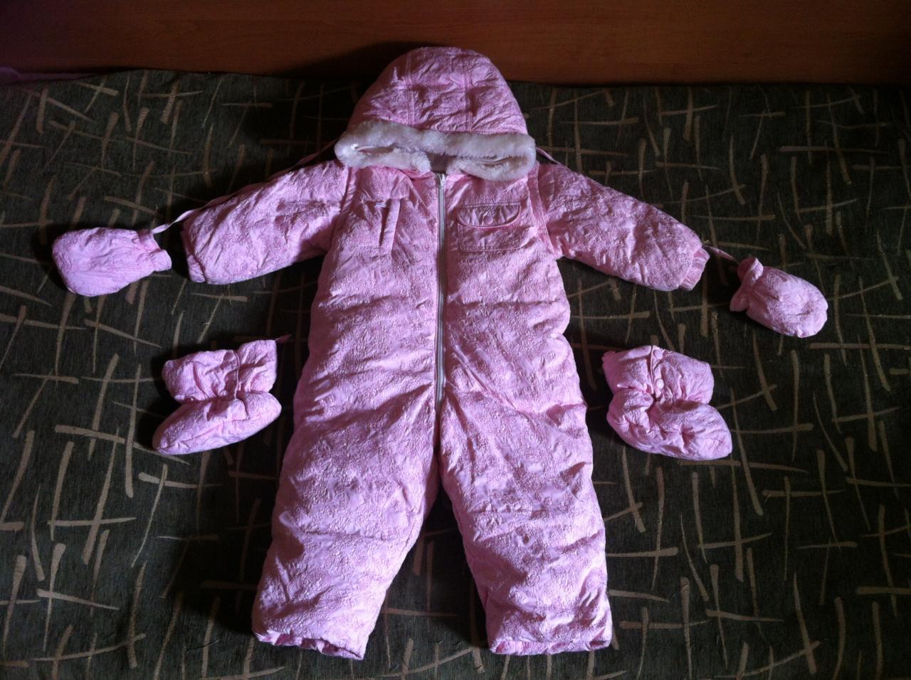 ID:	4477056 комбинезон на овчинке. Очень теплый и красивый. Внизу делается конвертиком, так что ребенок может там быть с рождения. Состояние новое. Рост 68 см. Цена 400 грн