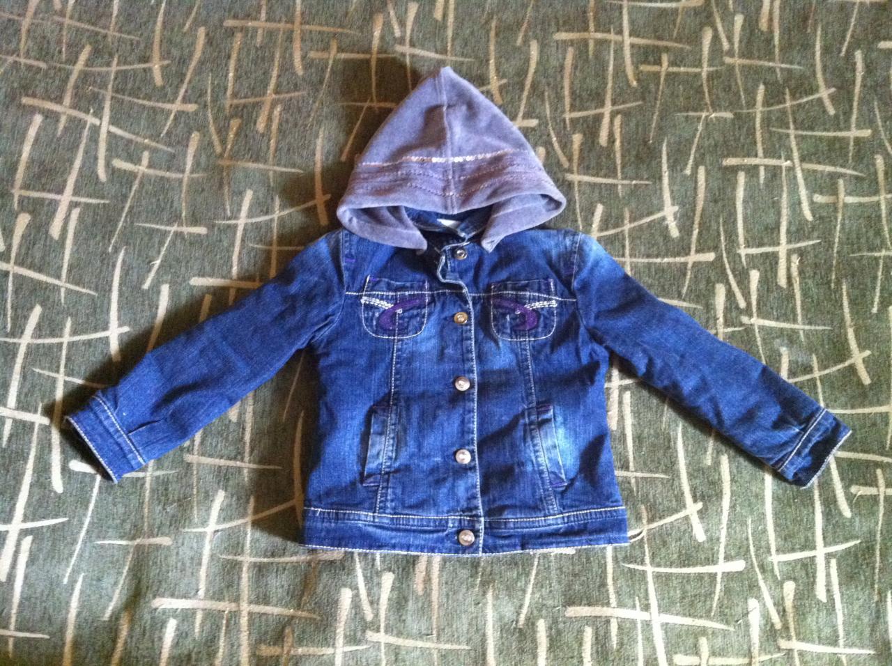 Куртка джинсовая утепленная. Очень красивая. Капюшон велюровый, обшит пайетками. Рост 98. Цена 150 грн
