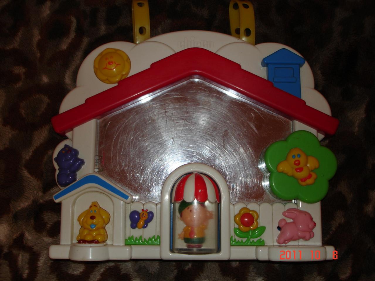 Продам игрушку музыкальную на кроватку + ночник Чико.Кошка и птичка издают звуки,собачка пищит,зайка передвигается,грибок с детками крутится.В середине домика зеркальце,а в темноте светится ночником(на фото плохо,но видно).Находимся на пос.Котовского,могу подвезти на Таирова или Черемушки.Цена 100 грн.