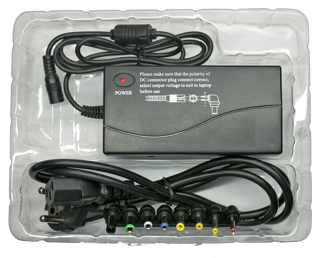 1. Адаптер питания универсальный для ноутбука HQ-Tech HQ-A90M2U, 90W (100~240V, 50/60Hz), ручная установка напряжений (12,15,16,18,19,20,24V), 8 переходников в комплекте, загнутые, 2 выхода USB, светодиодная индикация напряжения. - 25уе