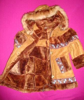 Продам дубленку(новую) овчинка, коричневая с золотистым напылением, примерно на возраст 3-4 года,