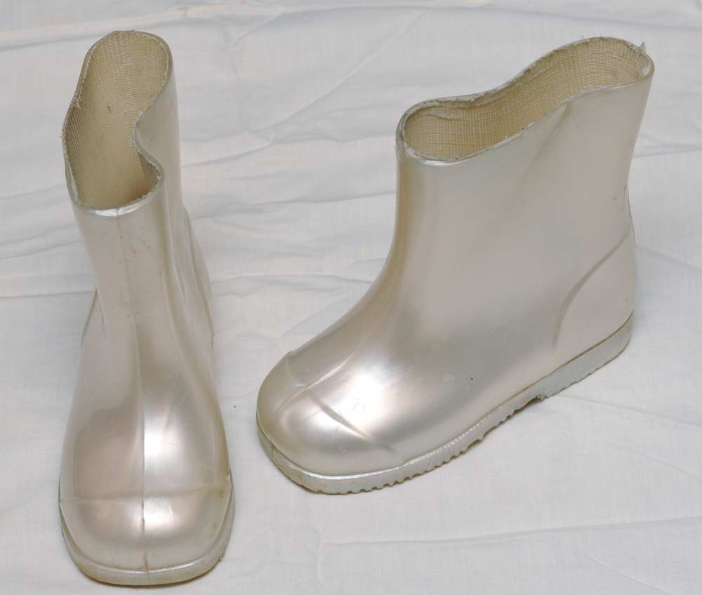 Белые перламутровые резиновые полусапожки по стельке 13,5-14 см. Цена 50 грн.