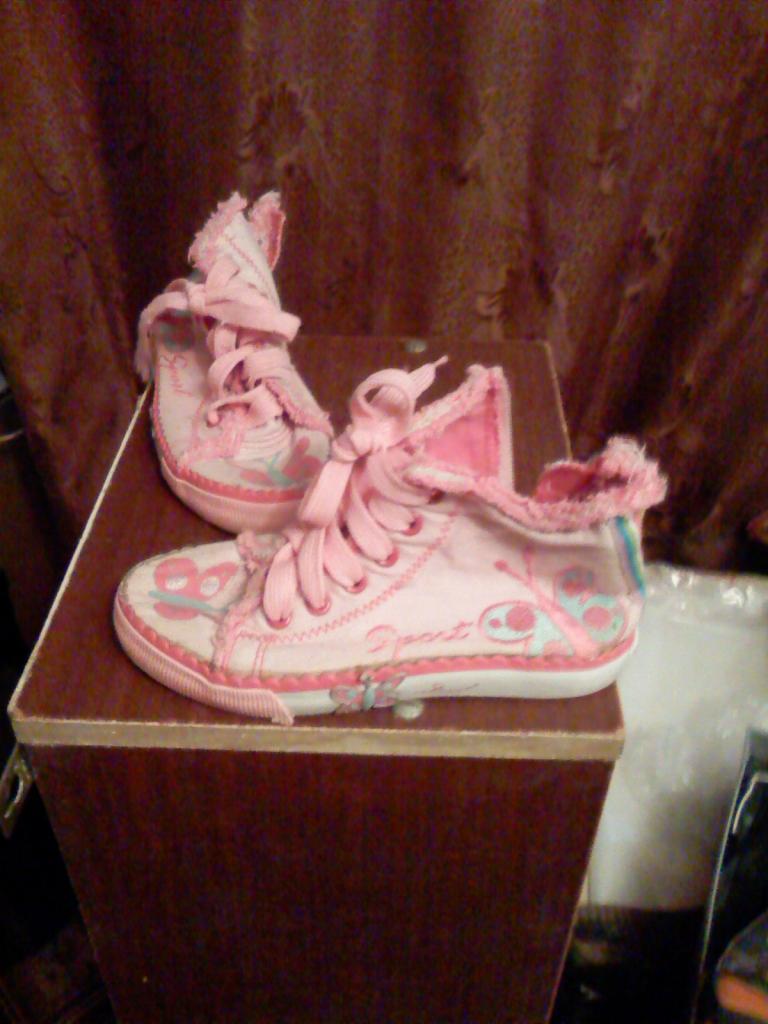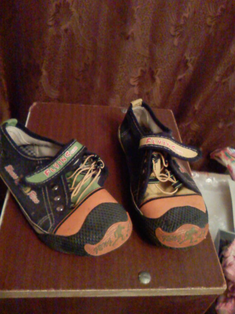туфельки по стельке 21 см, но внутри на задниках есть протертости, а так они очень хорошие, удобные кожаные. Кеды синие по стельке 21 см.