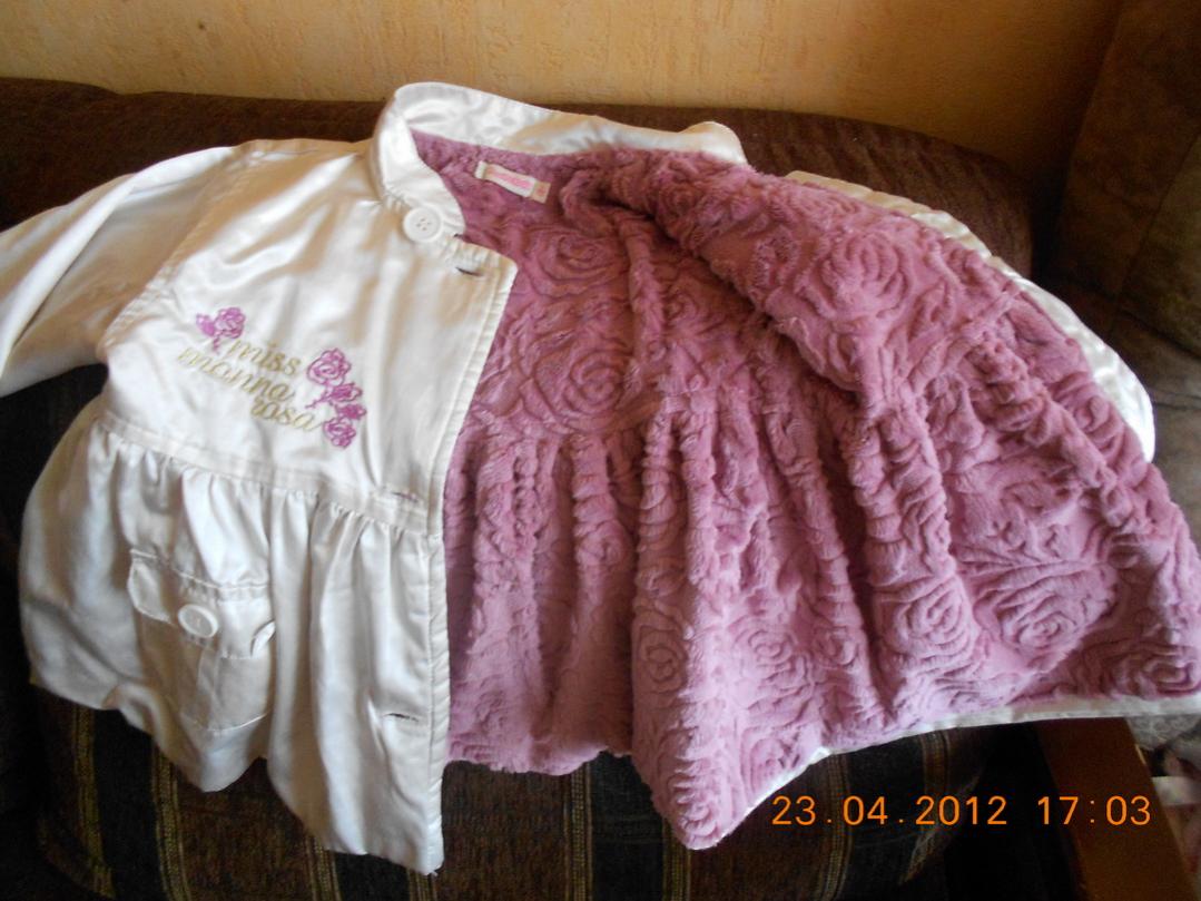 Курточка деми 80+6см-30грн. Шапочка(одевалась несколько раз) 15грн. Кофта белая с капюшоном +- 68см.- 15грн, кофточка розовая +-68см-10грн. Платье-вязка розовое 1-2г-30грн,
