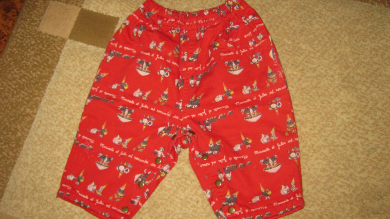 Плотный котон на подкладке, резинка. впереди карманы, штанины на заклёпках, очень удобно для замены памперсов. Размер на бирке67, 6месяцев. 50грн.Нажмите на изображение для увеличения