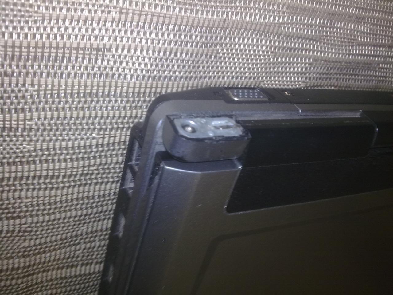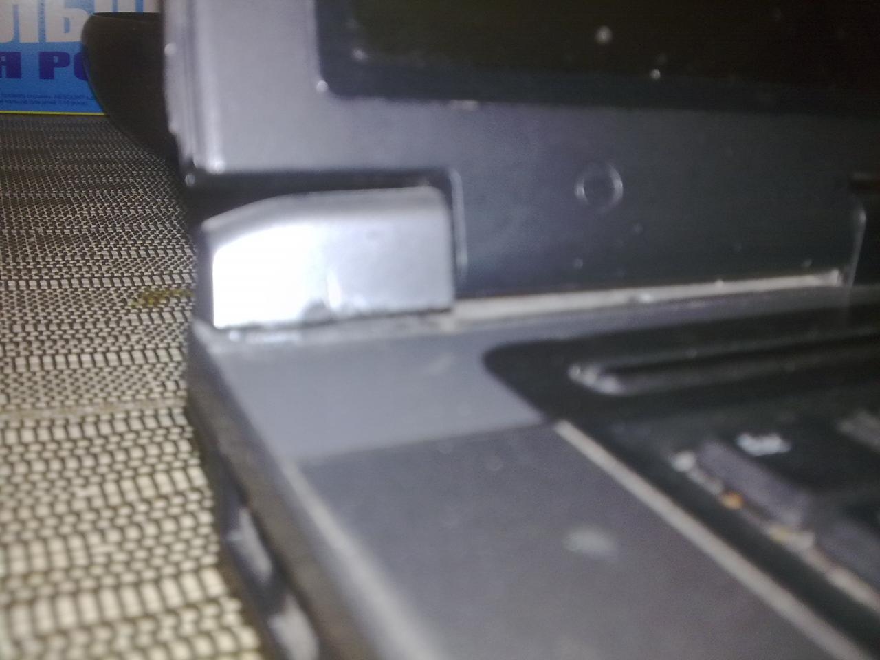 Поломана одна петля слева (на фото видно), работает от сети (батарея слабая, держит 5 мин.)