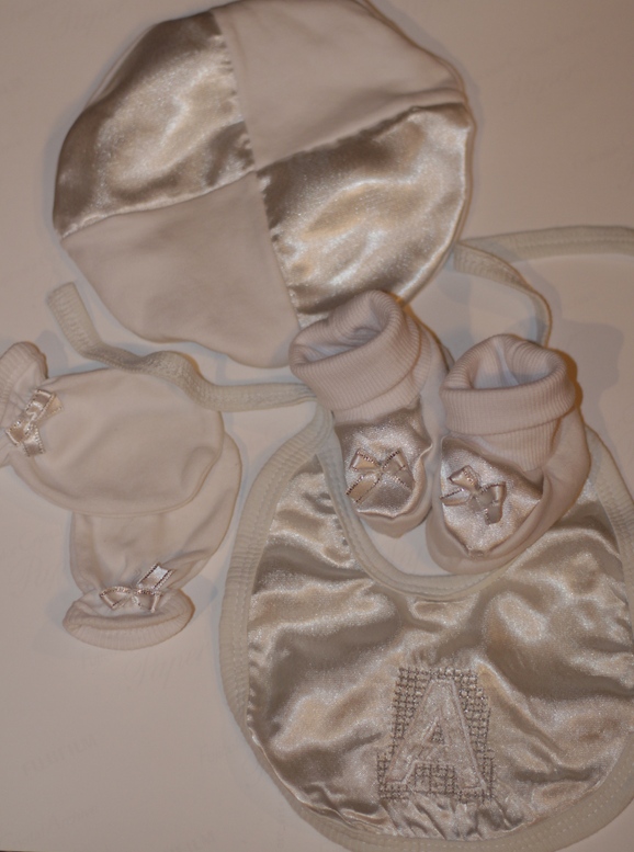 Продам шикарный костюм для маленького джентльмена, белоснежный с серебряной вышивкой (беретик, пинетки, слюнявчик, костюмчик)