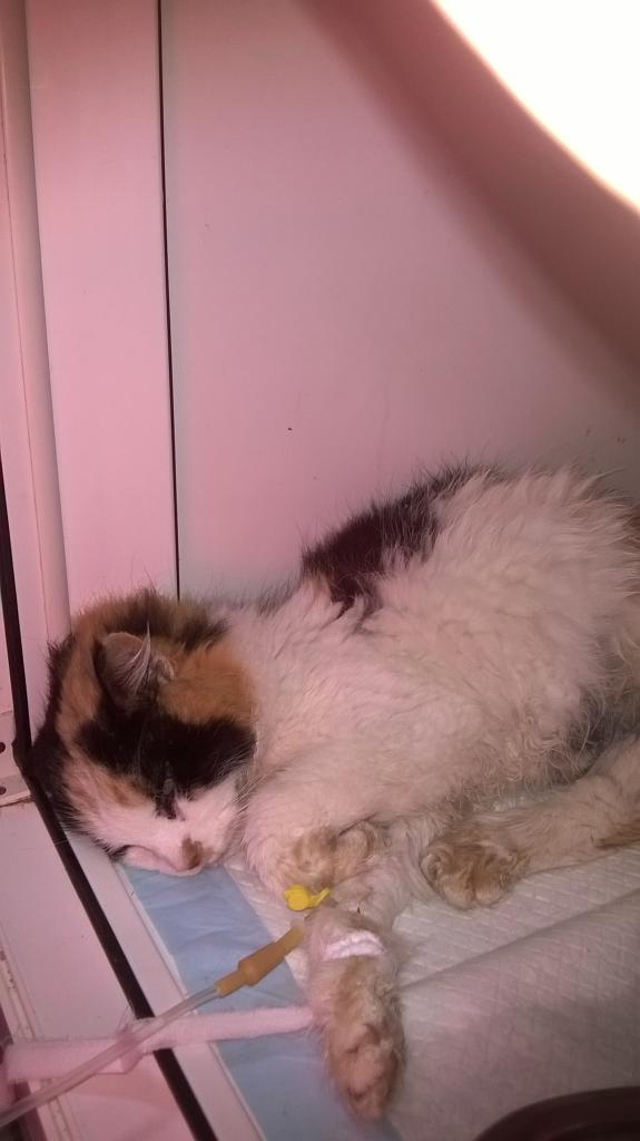 Сама она есть не могла, ближайшей электричкой мы помчались в клинику. Там меня "обрадовали", что у нее съежились почки и с такой потерей веса в таком возрасте... Прогноз совсем неблагоприятный. Взяли анализ крови. Он оказался, на удивление, неплохой. Сделали УЗИ. Тоже прилично. Я оставила ее в клинике и через неделю собиралась забрать, тк она начала есть самостоятельно. Но через несколько дней мне позвонили, сказали, что сделали операцию, так как произошло ухудшение. У Алисочки расслоился мочевой пузырь. Говоря простым языком: треснул мочевой и прямая кишка. Все зашили. Сейчас она на капельницах.