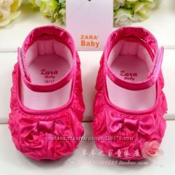 Красивенькие пинеточки Zara( пробег 1 месяц в коляске) - ярко розового цвета написан размер 19-20 - 80 грн