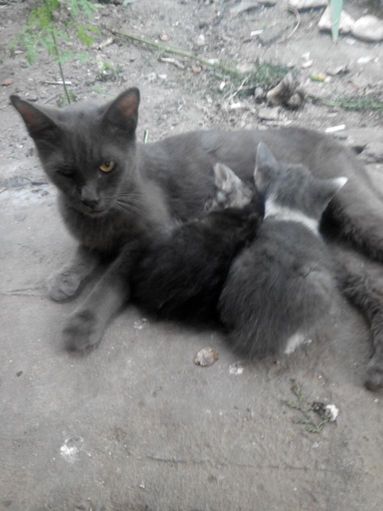 Вчера вечером к нам во двор подбросили кошачье семейство(кошка и 5 котят),котята очень красивые,дымчатого окраса.один очень пушистый,есть котенок альбинос.в том месте очень много машин,позавчера возле того дома задавили 2 котят,котята там не успевают подрасти(погибают).Может кто то захочет спасти и взять себе кого то из красавцев или кто то узнает потерянную кошку.Семейство подбросили на Таирова Ильфа и Петрова.![]()