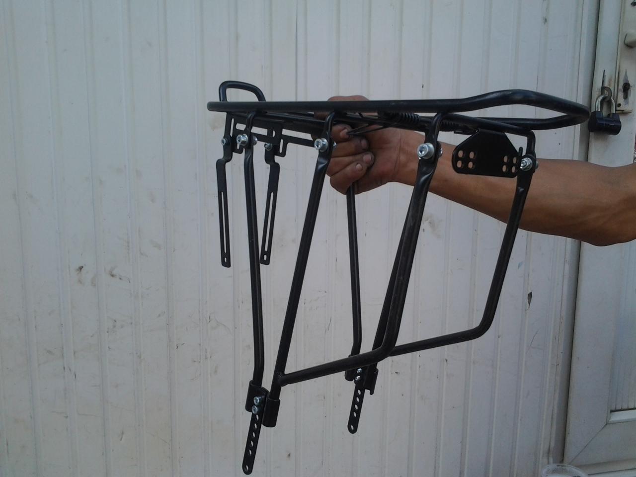 Багажник действительно удобный. Я купил себе в прошлом году на рынке (ул.Бочарова) за 100грн, их было полно. Удобен тем, что можно регулировать по диамеру колеса и уголу наклона, для меня было важно, что бы был строго горизонтален, т.к. ставлю велобаул.