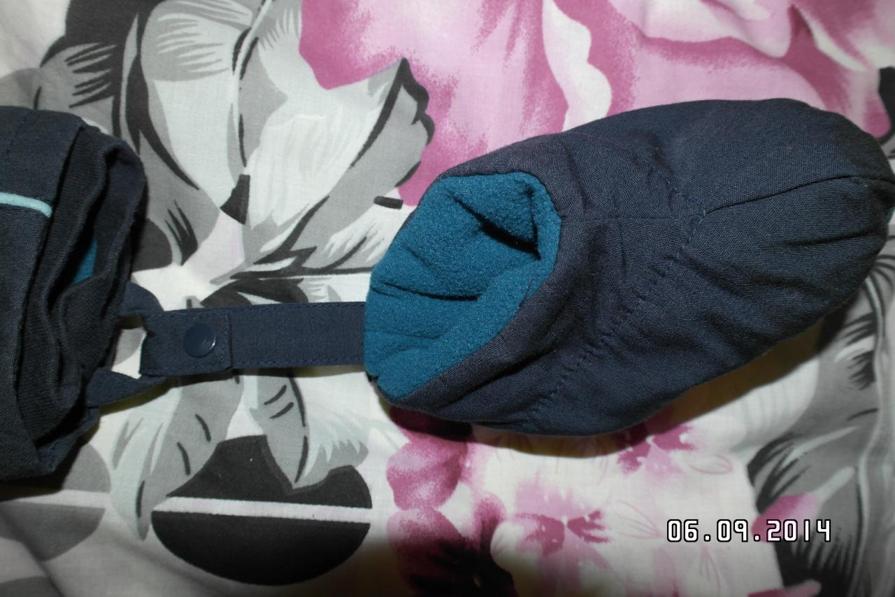 Варежки и ботики внутри на флисе,пристегиваються с помощью кнопок.Молния одна вдоль от горловины до памперса впереди.