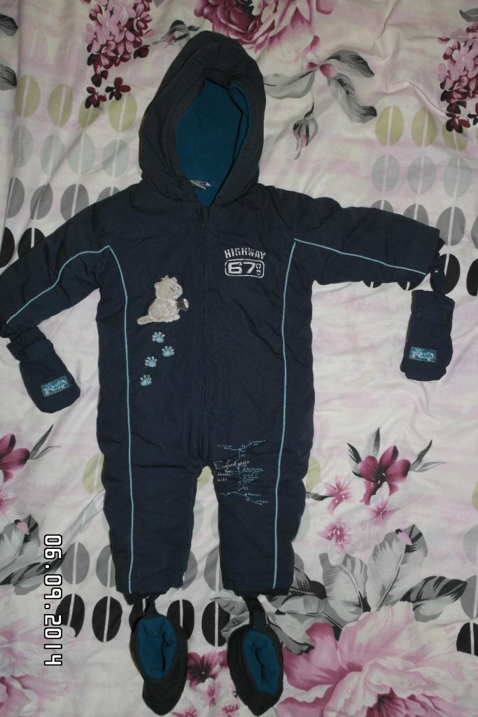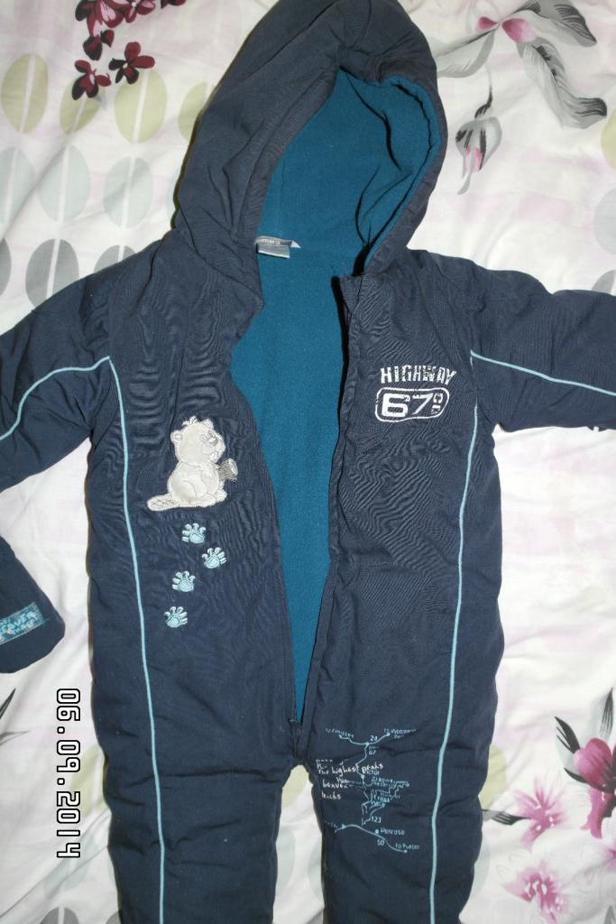 Продам наш тепленький комбинезон на флисе.Носили до роста 80(хотя указан размер 74).Носили в основном холодной осенью,а также теплой зимой.Использовали для сна на прогулке.