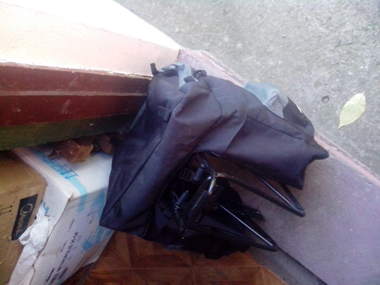 на нем установлен велорюкзак(штаны) из кодуры с 3мя большими отделениями и 2мя маленькими... новый... 200грн