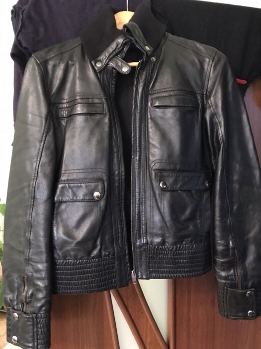 1. Кожаная куртка-пилот Манго, размер L есть небольшие потертости, подкладка на рукавах порвалась, 550 гривен;
