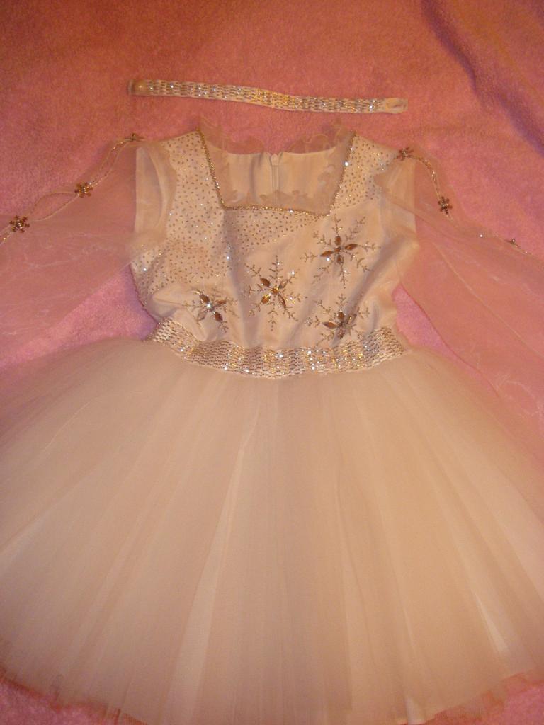 Костюм снежинки, одевался всего 1 раз на пол часа, грудка и рукава - шикарная вышивка ручной работы камнями и бисером, на шею одевается повязочка вся расшитая бисером. Платье сзади застегивается на молнию и завязывается красивым бантом. Ваша девочка будет неотразима на празднике. Прокат - 80 грн. Залог - 200 грн. Платье проживает на Черемушках, р-н Малиновского рынка.