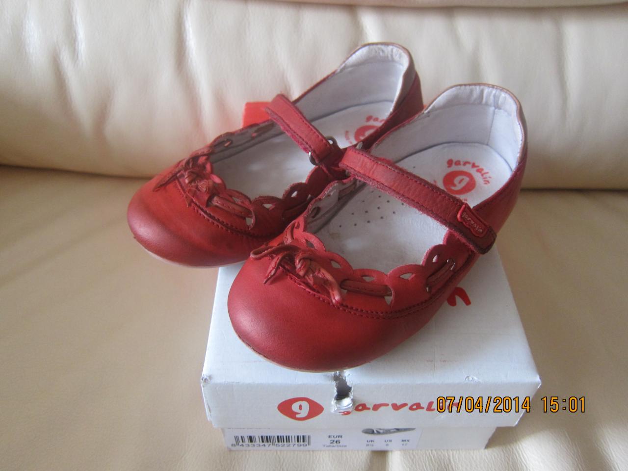 1.Туфельки "Garvalin",купленные в магазине "Mayoral" кожаные,кораллового цвета,с супинатором.Очень стильные и нарядные.Размер 26,длина по стельке-16,5см.
