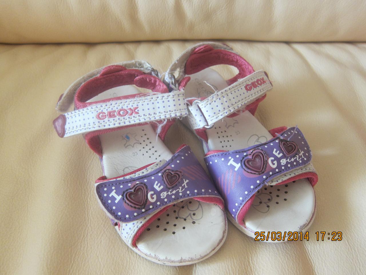 4.Босоножки фирмы "Geox",кожаные ,также на 3-х липучках:подъём,полнота,пятка.Очень лёгкие,нарядные.Размер 23,длина по стельке-15,5см.