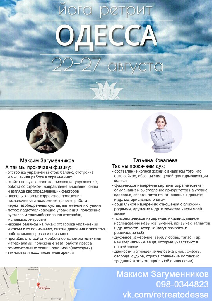 Наше замечательное путешествие начинается 22.08 и заканчивается 27.08, 6 полных дней практики, раскрытия внутреннего потенциала, постановки целей и, конечно же, МОРЕ!