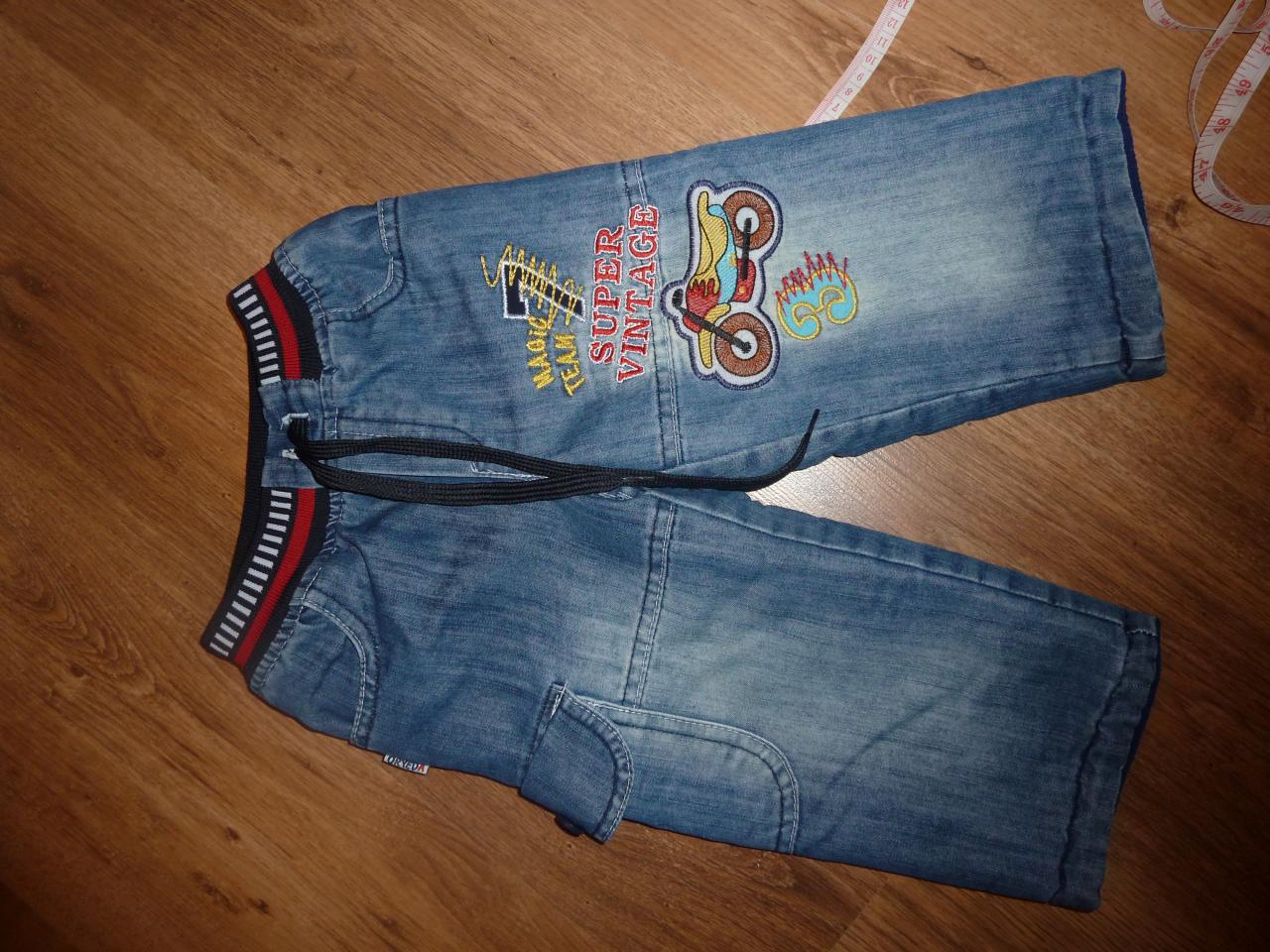 Джинсики на мальчика с флисовой подкладкой. Отличное состояние, без повреждений.Замеры: длина от пояса 45 см, шаговый 27 см, пояс на резиночке и шнурке,регулируется. Цена 100грнНажмите на изображение для увеличения