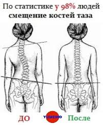 Вскоре тазовые кости пациента обретают присущее им от рождения положение, а затем вслед за ними выравнивается и позвоночник.