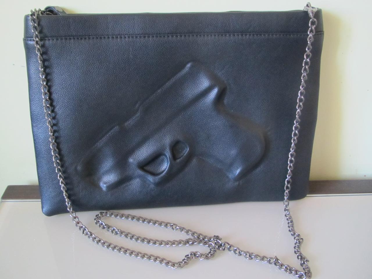 Новинка сезона - стильная сумка VLIEGER&VANDAM c выпуклым изображением дамского пистолета системы "Браунинг" (ограниченный выпуск). Носится как за боковую ручку, так и на цепочке на плече.