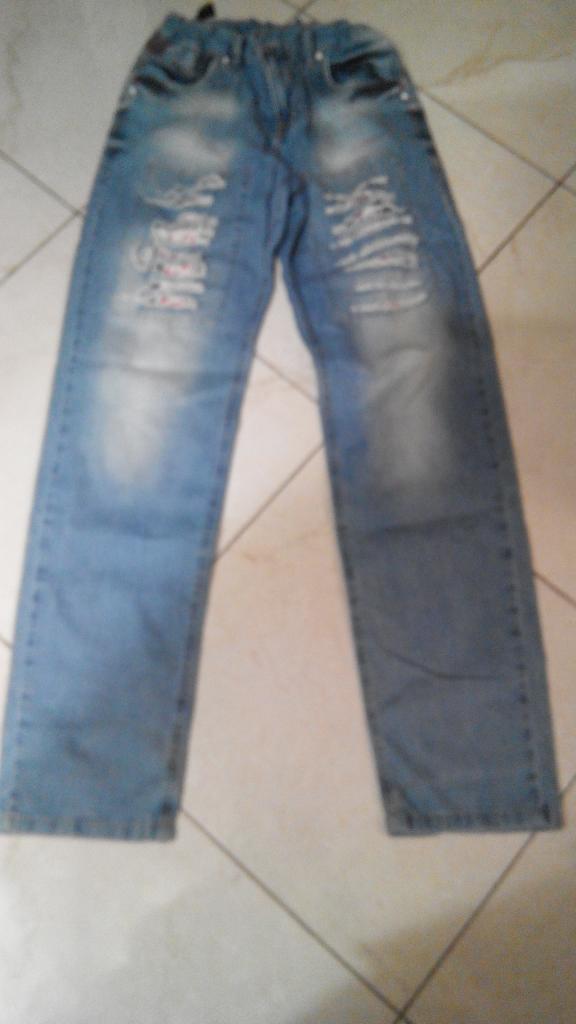 7. Джинсы "с дырками", летние, б/у, с регулируемой резинкой на поясе, ДИ 106, ШИ 42, рост 164 -168, 200 грн.