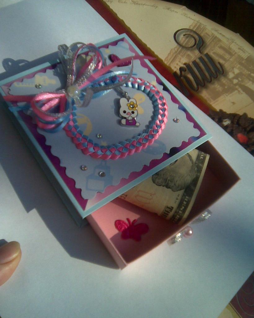 Здорово! милый подарок получится и не забудется, деньги разлетятся, конверт бы потерялся, а красивая коробочка останется напамять!!!