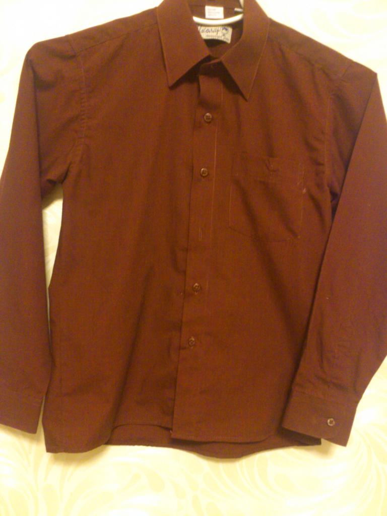 1. Рубашка красивого глубокого бордового цвета с длинным рукавом для мальчика, размер 128-134.