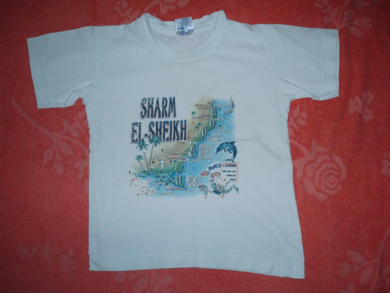 9. Футболка белая с рисунком, х/б, р. 104-110.