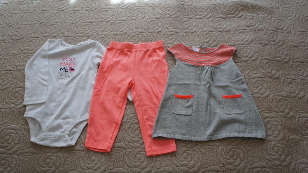 1. Костюмчик тройка Carters - боди и штанишки трикотажные, туника - тонкая вязка - 250 грн.