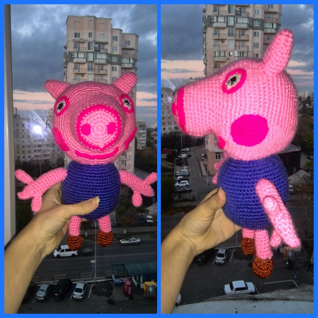 Дорогие Мамочки)вяжу на заказ Свинку Пеппу)и Джордж.набиваю синтепоном ,легко стирается,форму не теряет.заказ готов в течении трёх дней) цены 200гр -25 см.