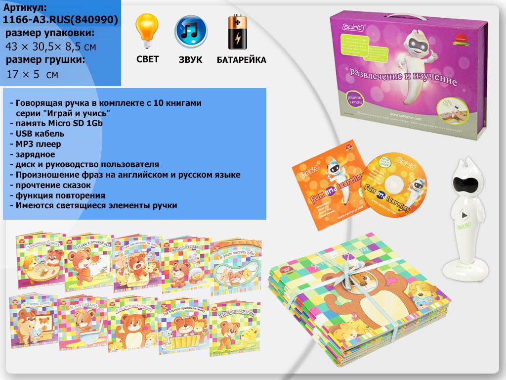 Описание Говорящая электронная ручка и 10 книжекстанет отличным помощником для Вашего малыша в изучении русского и английского языка, чтения стихов и правописания, а так же ручка может рассказать ребеночку сказку.Говорящее электронное перо изготовлено с использованием новейших технологий и является высокотехничной электронной продукцией, разработанной для помощи в активном развитии маленьких деток.Для того, чтобы ручка работала, для начала ее необходимо подключить к компьютеру и загрузить на нее необходимую аудио информацию, которая содержится на специальном загрузочном диске. Затем ручку необходимо поднести под углом 65% к тексту в книжке, чтобы она начала рассказ.В комплекте к детской говорящей ручке идутдесять специальных книжек, которые в игровой форме рассказывают малышу о том, что необходимо делать в распространенных жизненных ситуациях.Такой чудесный инновационный прибор поможет Вашей крохе с обучением и принесет много веселья и радости. ХарактеристикиВыполнено из качественных полимерных материалов и картона. В комплекте идет USB-шнур и зарядное устройство. Все необходимые аудиоматериалы находятся на диске.Длина: 18 смВысота: 18 смТолщина: 4 смКомплектация1 ручка, 1 карта памяти, 1 USB-шнур, 1 зарядное устройство, 10 унижек, 1 диск с аудиоматериалами, 1 инструкция