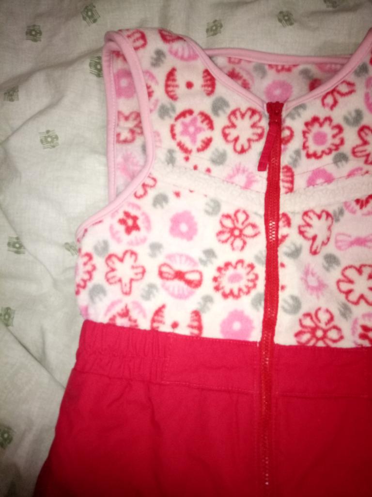 Комбез в отличном состоянии, яркий и тёплый. Непромокаемый. На плечиках липучки для регулировки размера, флис в районе жилетки.