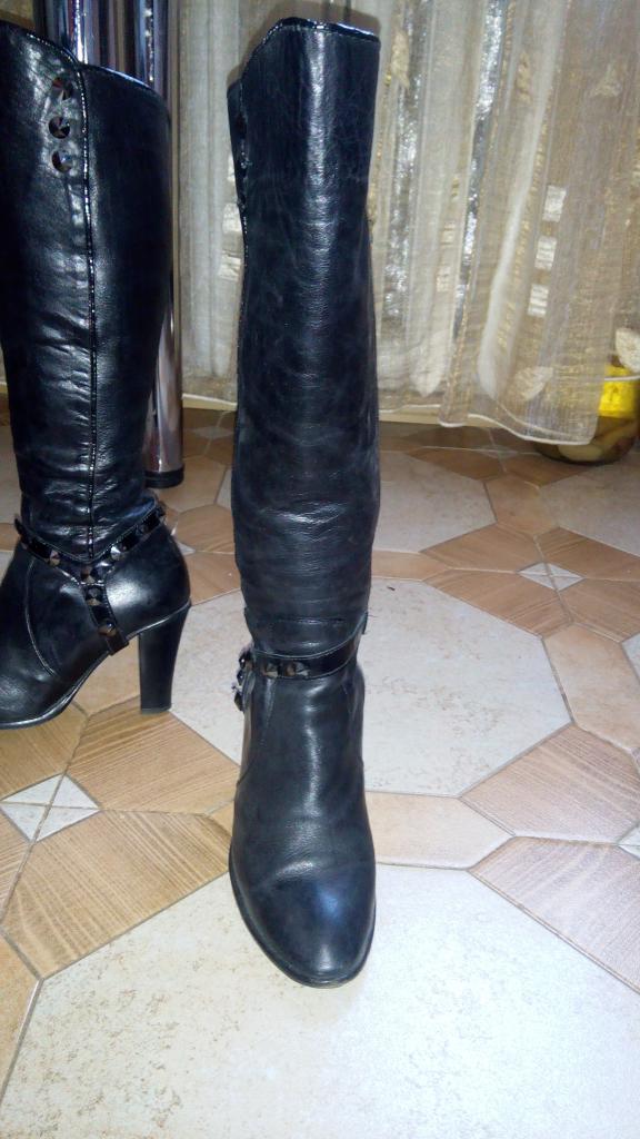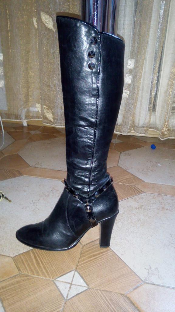 Кожаные сапоги с камнями "Сваровски" очень удобные и красивые. 37 размер, не на полную ногу.