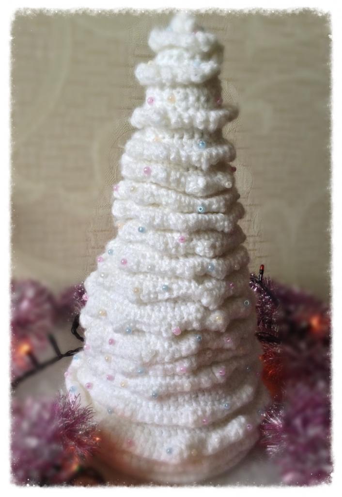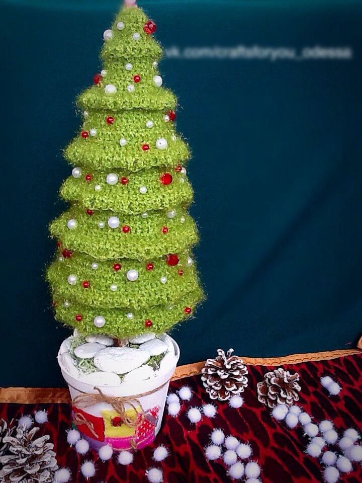 Елка вязаная, наполнение синтепон, расшитая бисером. Высота 27см. Цена 150грн