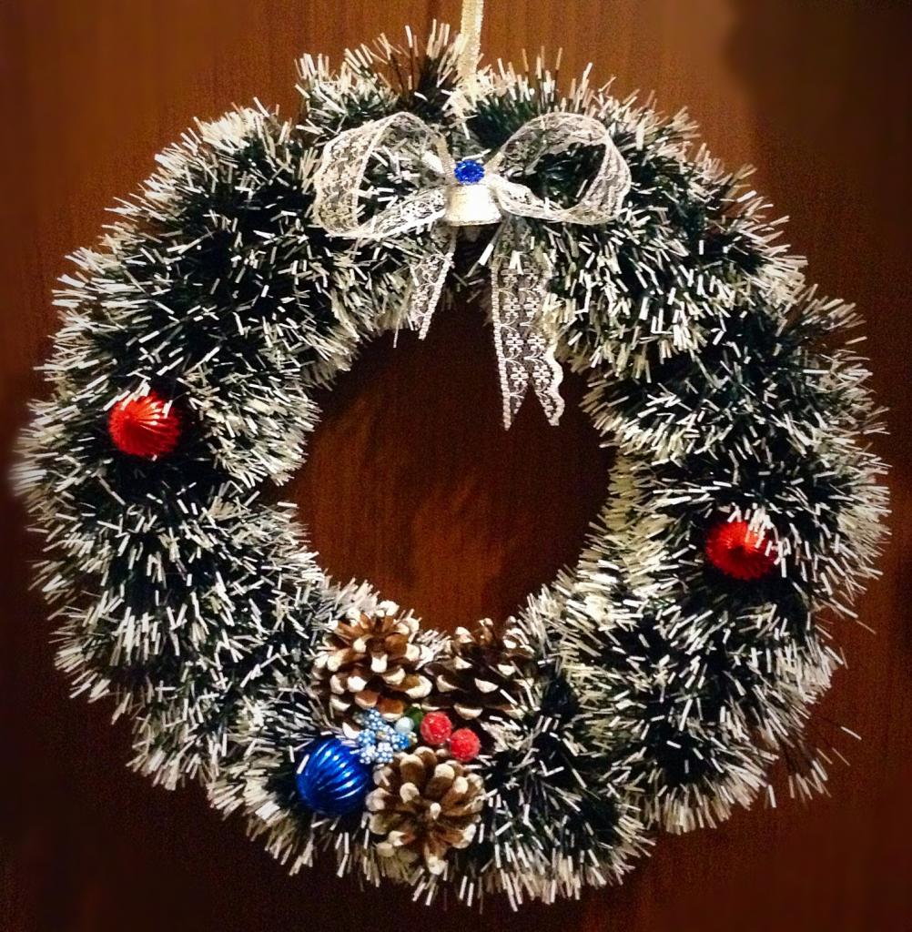 Венок на дверь. Диаметр 23см. Ручная работа.