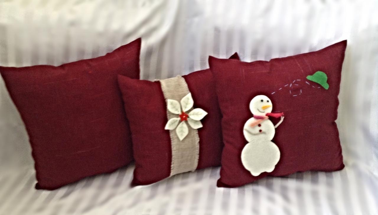 Подушка декоративная . Ручная работа. Аппликация из фетра.