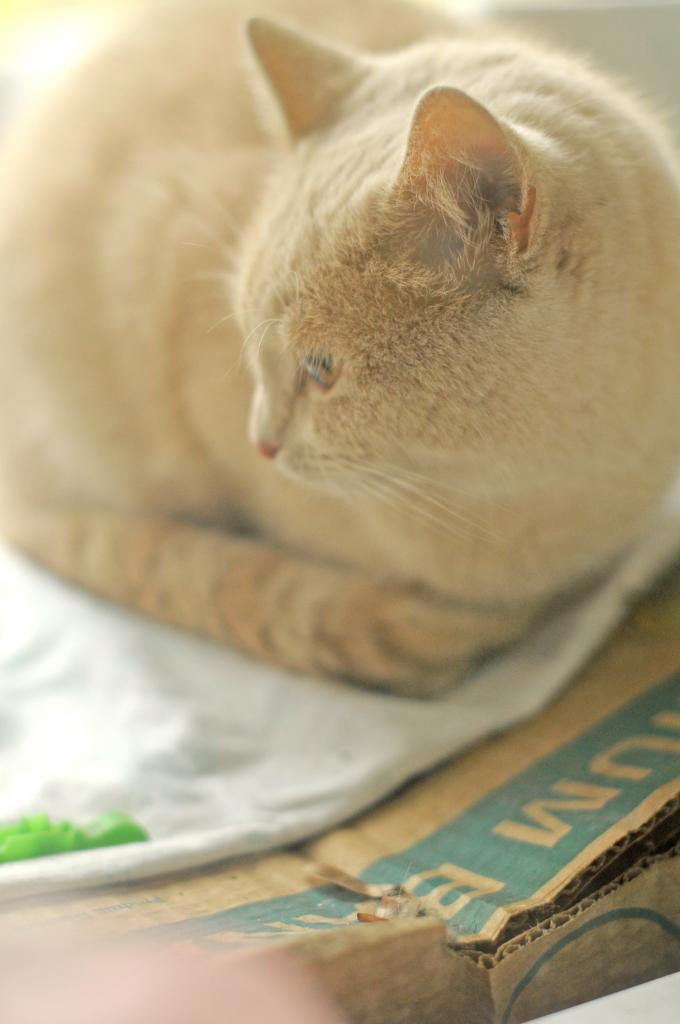 Окрас светлый бежевый. Явно домашний т.к. боится уличных котов, а людей не боится. Ухоженный, с удовольствием идет на ручки, ластится, спокойно ведет себя в квартире. Возможно, даже породистый.