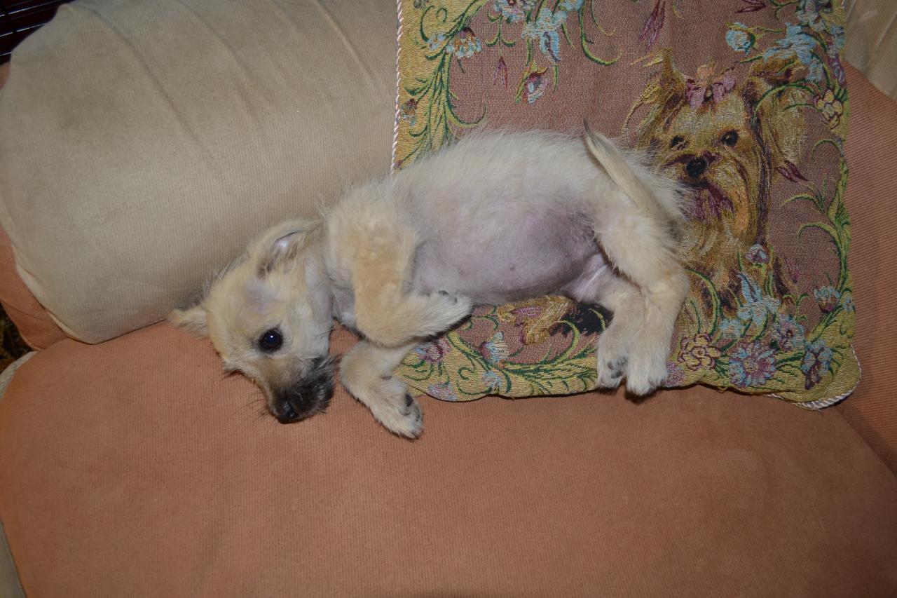 На старом месте, где в том году, я подобрала Лунтика№ 1 ,сидит его копия,маленький, полулысый, беленький,весь в ранах. Покормила, обработала от блох, помазала его,предупредила, чтобы не убивали и не выбрасывали его- приду днем и заберу его в клинику.отвела ребенка в сад, договорилась с передержкой, набрала у вета лекарств- пошла за чудом.Малыш пропал!!! Мы с женщиной 3 раза облазили все кусты в санатории,сторож сильно интересовался- " он что породный. чого вы его ищете?Сказали что-ДА. найдете- звоните!