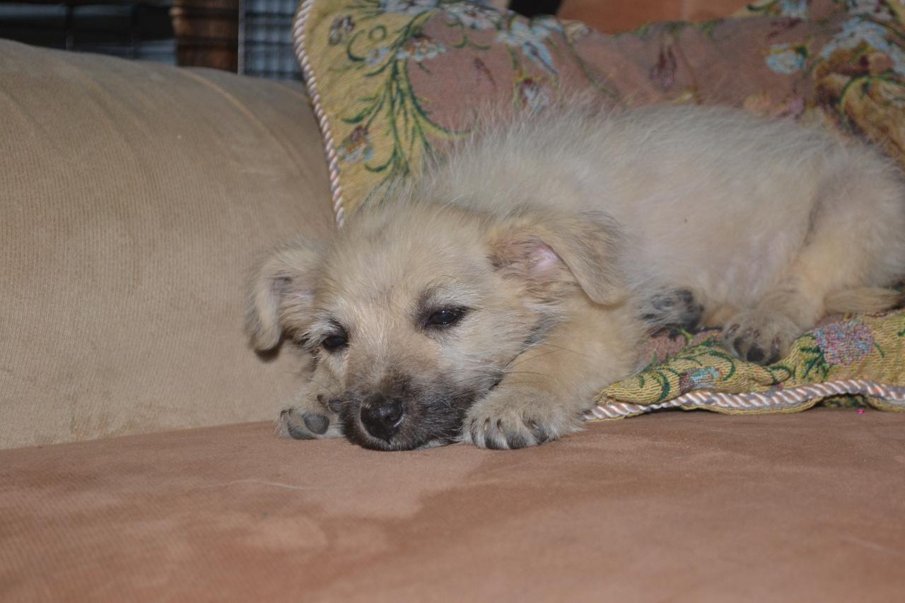 Сегодня утром,возвращаясь с санатория,все на той же злополучной остановке еще 2 щенка!!!.отвезла ребенка в садик,вернулась с переноской: осталась одна девченка, сестра вчерашнего мальчика с декамекозом!!Пока забрала домой, выкупала, уколола вчерашними назначениями братика и до завтра оставила на балконе.. ребенок очень истощен, после купания часа 2й спала ,как убитая,завернутая в полотенце.