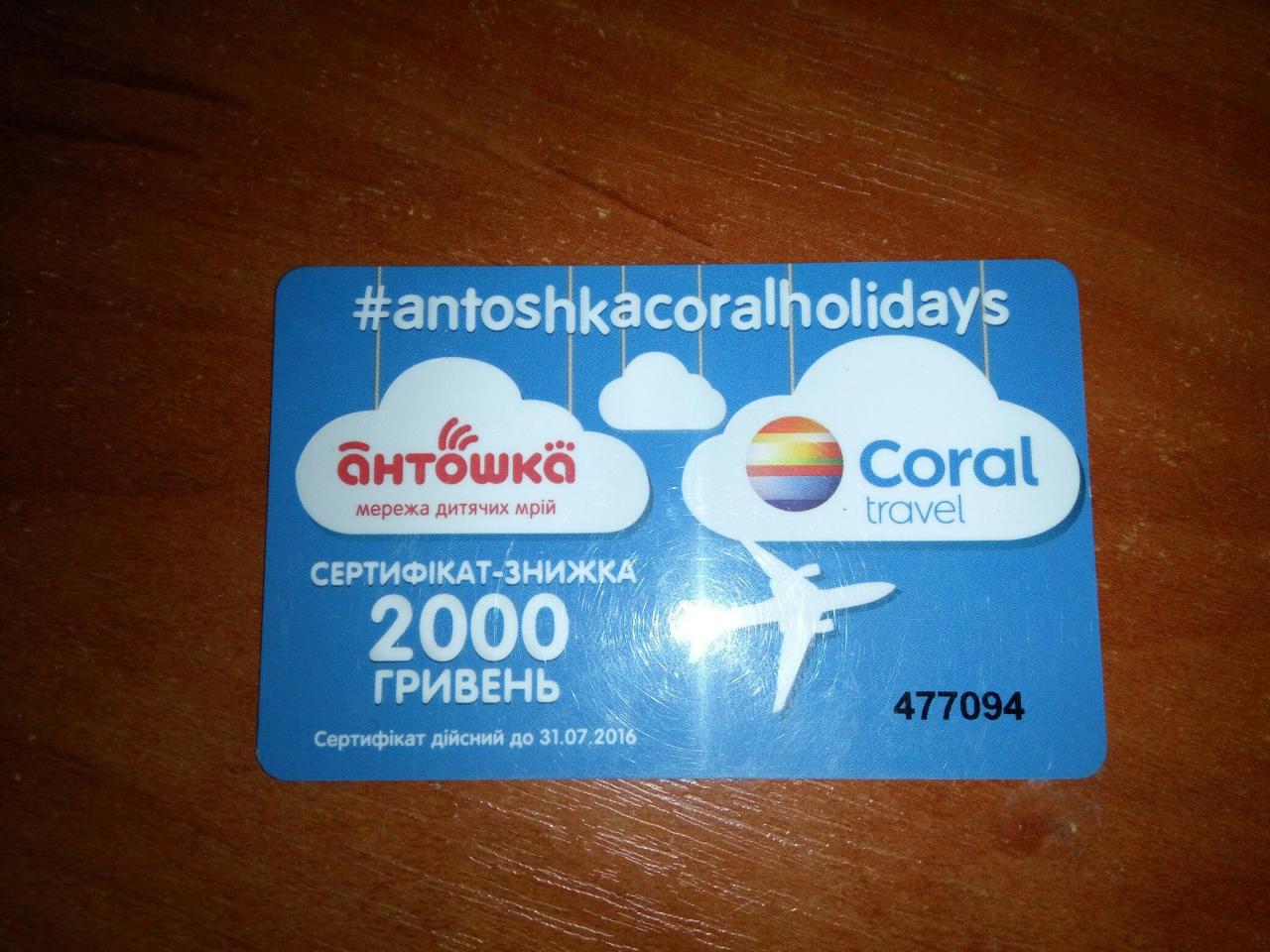 Продам по не надобности Сертификат-скидка Coral travel может кому то нужен предлагаю экономию в 1500 грн ))) отдам при встречи либо отправлю куда угодно по Украине. 500 грн