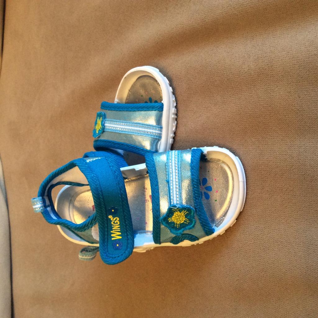 5. синие сандалики с цветочком, растежка на липучке р 7 14 см - 100 грн
