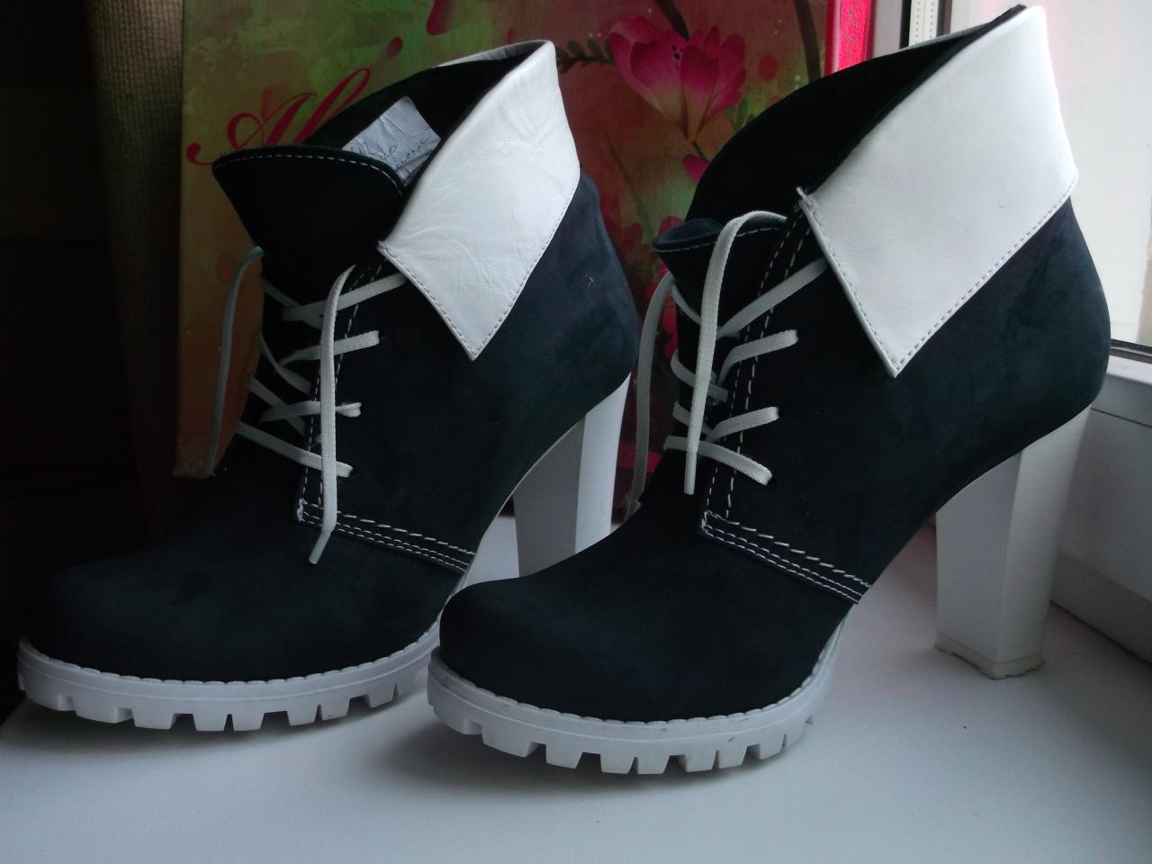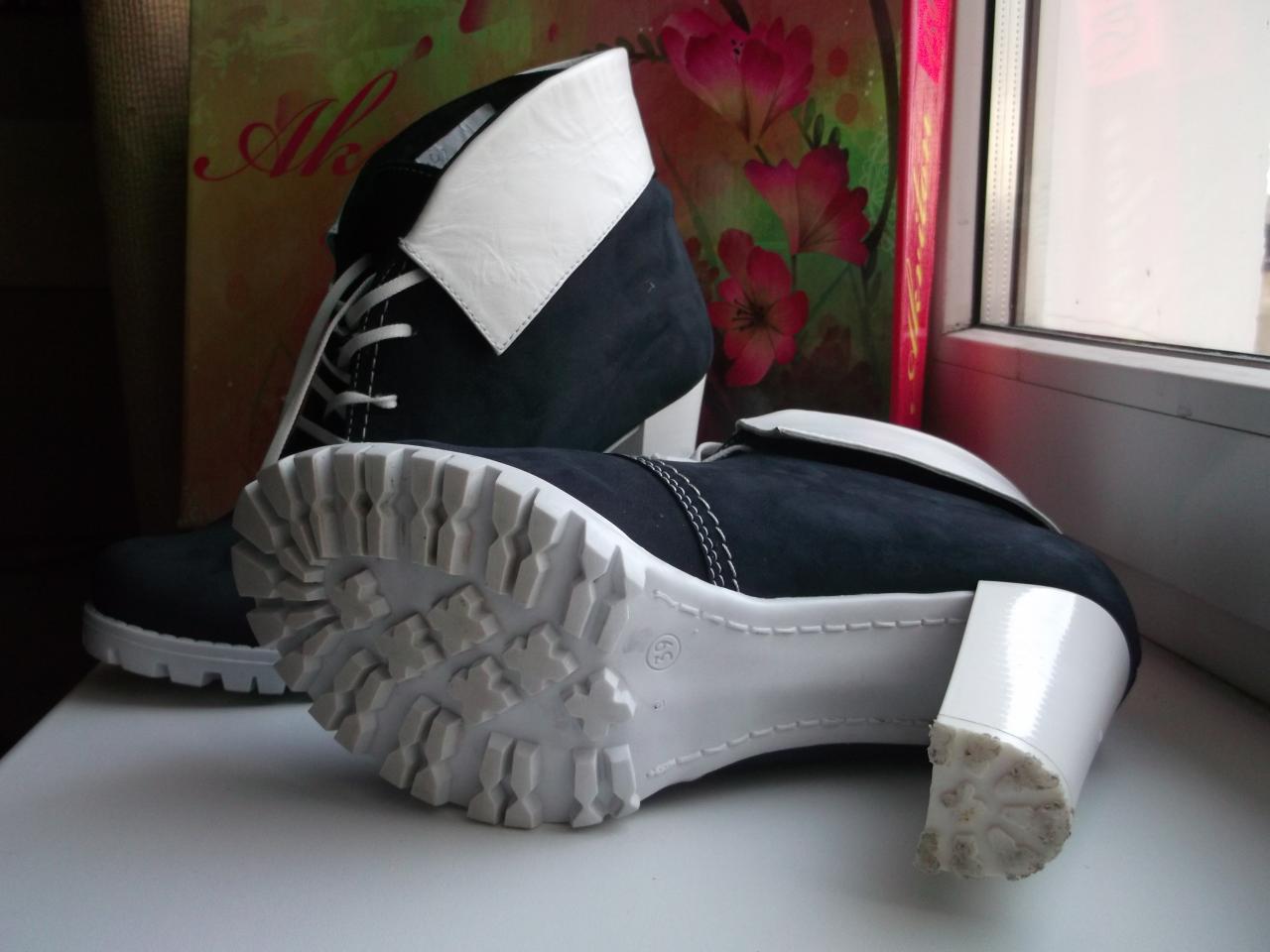 Продам осенние ботильоны 39-40 р. 26 см натуральный нубук/кожа сине-белые