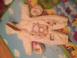 Второй очень красивый комбинезон фирмы OHM&Emmy - бежевый с пристегиващимися бахилами, подойдет и мальчикам и девочкам, можно носить до холодов.