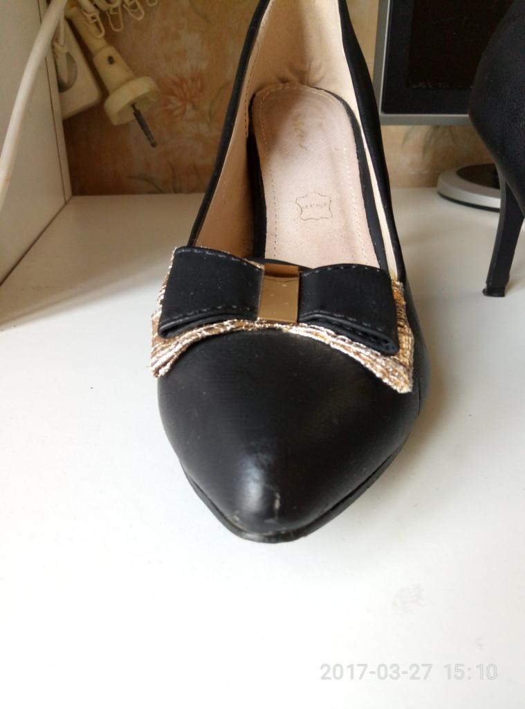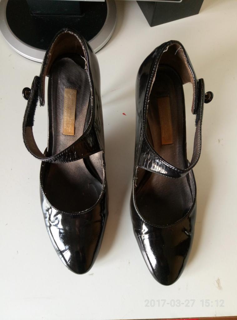 1. 41 р-р, 26 см, каблук 8 см, туфли одеты были всего на два мероприятия, элегантные, милые, внутри частично кожа, набойка родная.Очень маленькая царапинка на носке