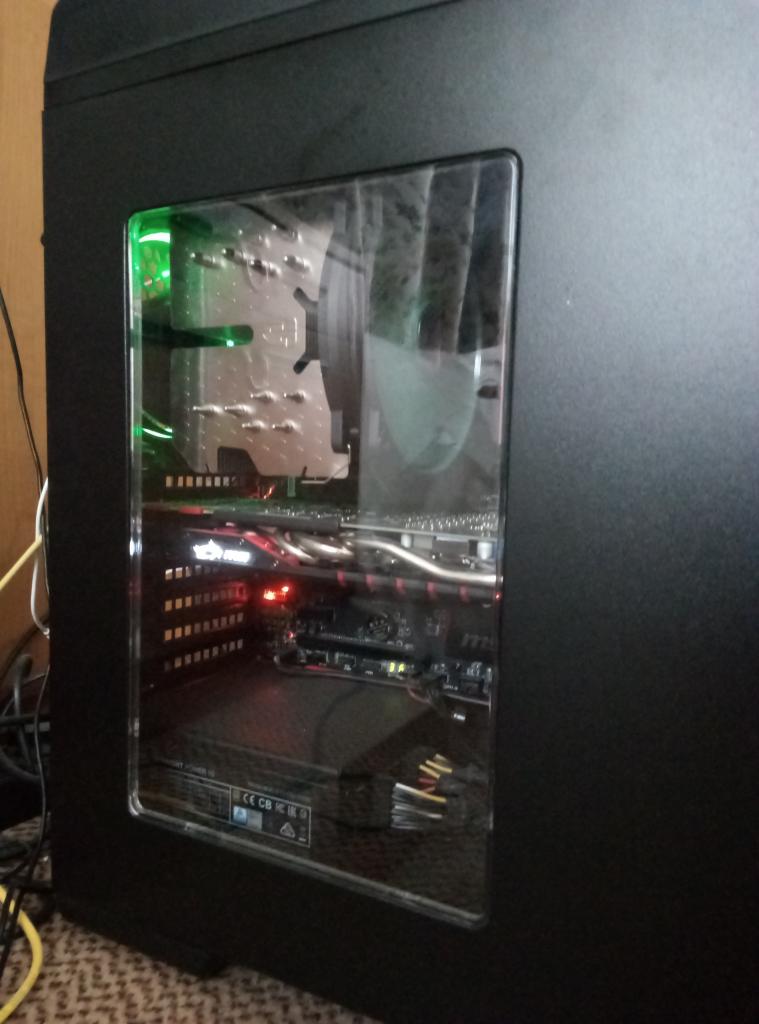 Комп собран очень качественно, комп с боковым окном, ни единого проводочка не видно, все спрятано за задней стенкой корпуса. Внутри Все красиво (мать, видяха и оператива стилизованы в красных тонах, остальное все в стильных темных тонах. Стоковый задний кулер корпуса мне показался шумноватым и я поменял его на тихий, большой и с приятной зеленой подсветкой Thermaltake кулер. Корпус очень хорошо продувается, вдув спереди, снизу, сзади и сверху, кроме того стоят три фильтра, которые не дают пыли проникать во внутрь, я их постоянно прочищаю, внутри нет ни пылинки. Сверху есть кнопка регулировки скорости оборотов вентиляторов в корпусе. Корпус большой, с возможностью установить в него водяное охлаждение. Еще из удобства сверху расположена док станция для быстрого присоединения жестких дисков и ssd, не нужно разбирать корпус и искать сата-питания кабеля, а просто втыкнул диск и сразу пользуешься, удобно перекидывать любую информацию.