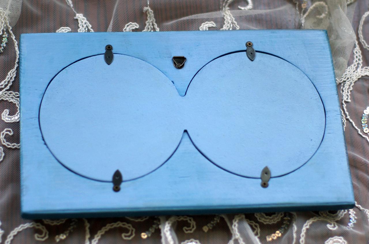Рамка для фото зроблена з натуральної сосни. Пофарбована акриловими фарбами. Фоторамка укомплектована склом і задньою стінкою.