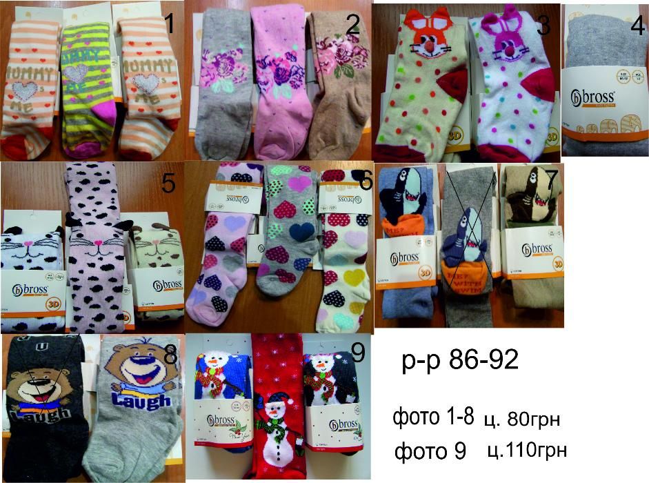 Детские демисезонные колготки Bross для девочек и мальчиков разных размеров.